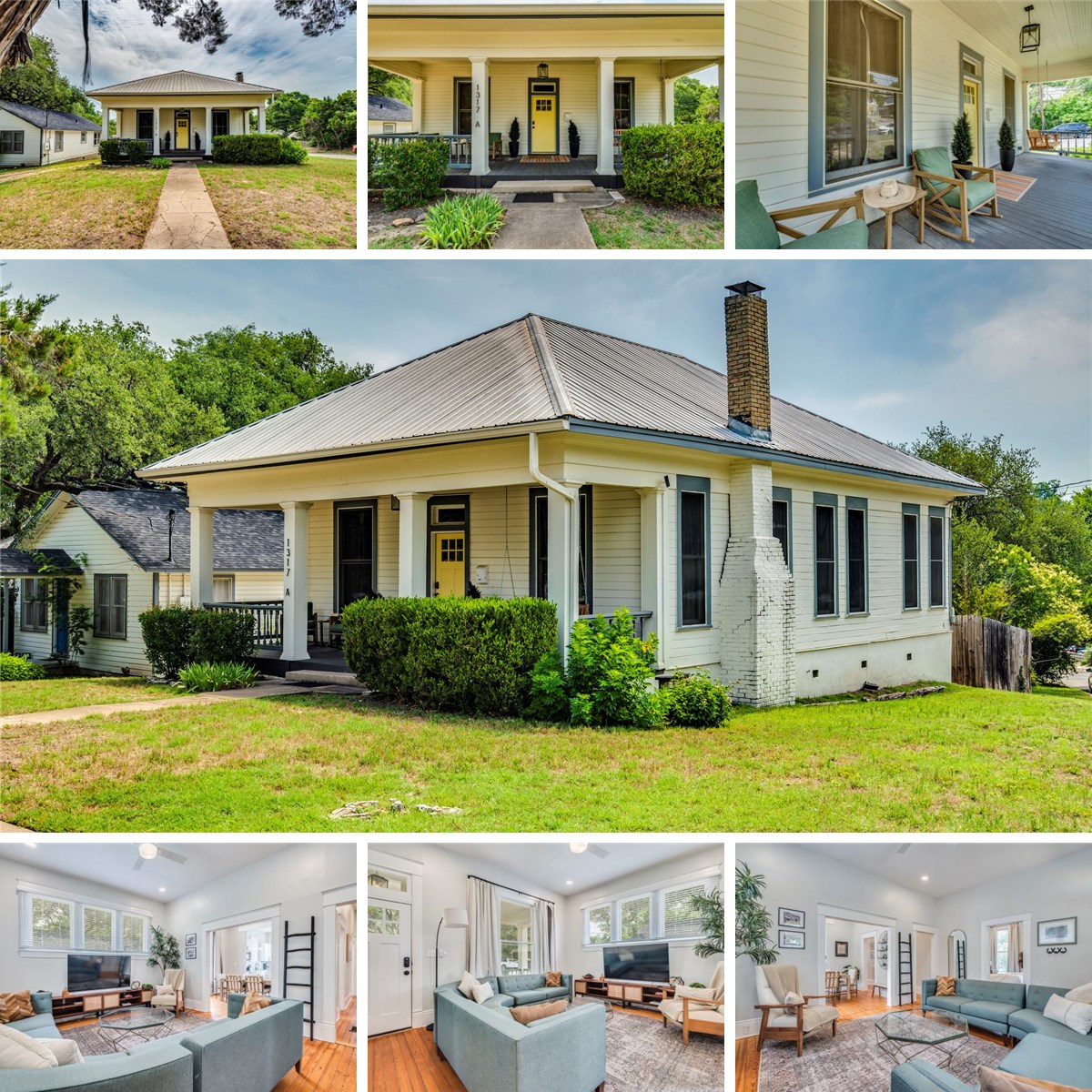 The property includes a classic Craftsman-style main home (1317 Newning, 3 bed / 1 bath, ~1,137 sqft), a second residence (1315 Newning, 2 bed / 1 bath, ~832 sqft), and a separate studio unit, all thoughtfully updated in 2022. Each structure offers charm and functionality, creating immediate rental income potential or the ability to live in one unit while leasing the others.